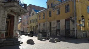 окружена зданиями постройки 18 века , включая нарядную ратушу с красно-розоватым фасадом, расположенную на западной стороне.»Немцы называли эту крепость Дерпт, а русские — Юрьев. На полпути меж двух великих озер, Чудским и Выртсъярв, над обрывистым склоном холма, где некогда было языческое городище эстов, возвышался этот город-крепость, пограничный форпост крестоносцев, весь каменный, замкнутый, потемневший от столетних дождей…»